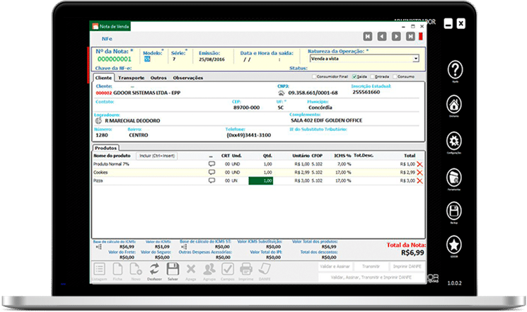 | Um software para emissão de vendas de forma fácil e rápida! É o substituto perfeito para emissão de documentos eletrônicos de forma fácil e rápida. Contém cadastros de produtos, clientes, fornecedores, emissão de NF-e, NFC-e, SAT e importação de XML. Homologado em todo o Brasil. Cadastre seus clientes, seus produtos, entrada de nota fiscal de compra e faça backup. Liberado inicialmente para três computadores com possibilidade de expansão conforme necessidade! Cadastro de clientes integrado Cadastro de produtos Possibilidade de utilizar valor para atacado Encaminhe XML e danfe por e-mail automaticamente Inutilização de numeração Cancelamento de notas conforme legislação Configuração fiscal referente ao seu Estado Emissão de Nota Conjugada com produtos e Serviços Cadastre seus clientes de forma prática e rápida. Informe apenas o CNPJ e o sistema importa os dados do cliente Agende seus contatos com o cliente que o sistema avisa Seis campos personalizados conforme sua necessidade Cadastre seus produtos para a emissão de NF-e Cálculo de Custos Composição de produtos Controle de Nº de série Configuração de Grade de produtos Alteração de preço em massa Seis campos personalizados conforme sua necessidade Preço de venda para atacado Copia de segurança dos XML Backup automático todos os dias Produto com manutenção mensal, consulte-nos. |
